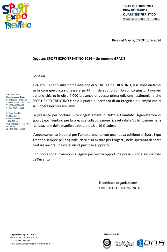 Il ringraziamento a tutte le Federazioni da parte del Comitato Organizzatore di Sport Expo Trentino.