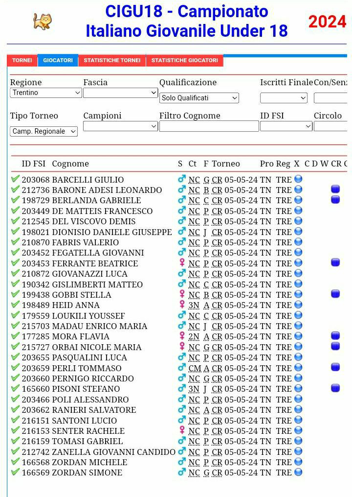 Per coloro che avessero intenzione di partecipare al CIGU18 di Salsomaggiore grazie al bonus di qualifica con wild card sono invitati a mandare una mail di interesse a trentino.scacchi@gmail.comentro il 28.05.2024