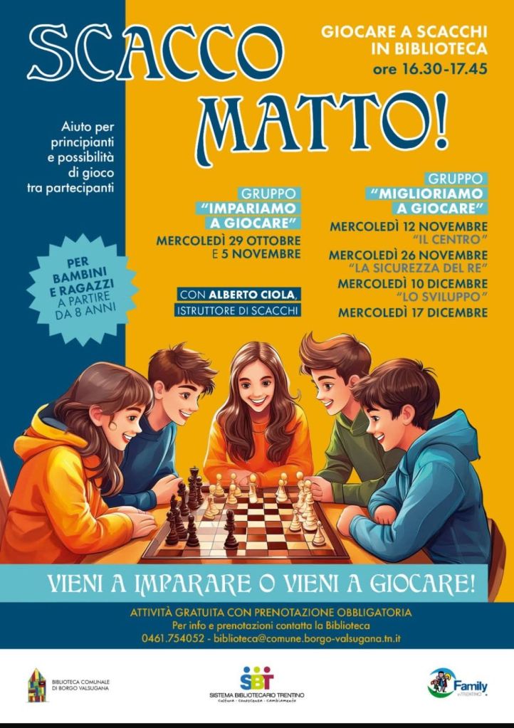 Dal prossimo mercoledì 29/10/2025 si impara e si gioca a Scacchi presso la Biblioteca di Borgo Valsugana con l’ Istruttore FSI Alberto Ciola 😀♟️
