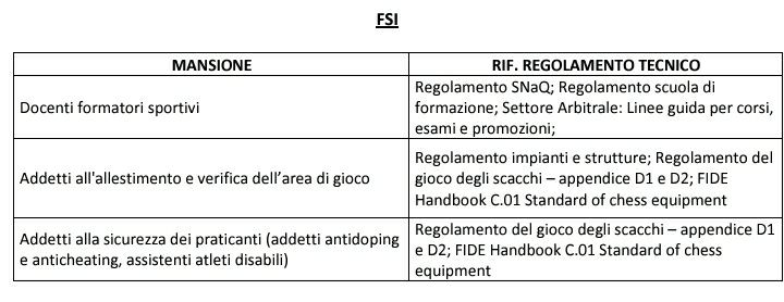 Le mansioni sono previste ai sensi dell’art. 25 comma 1-ter del d. lgs. 36/2021, sulla base dei regolamenti tecnici delle singole discipline sportive, comunicate dalle FSN e dalle DSA, anche paralimpiche, al Dipartimento perlo Sport